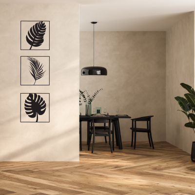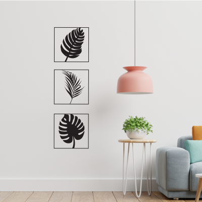 סט תמונות מתכת 3 חלקים עלים טרופיים