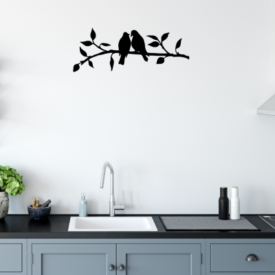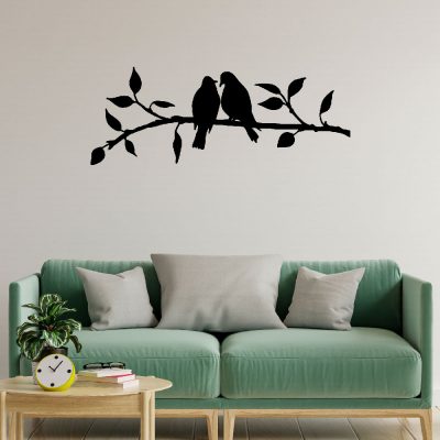 תמונת מתכת בעיצוב זוג ציפורי אהבה על ענף